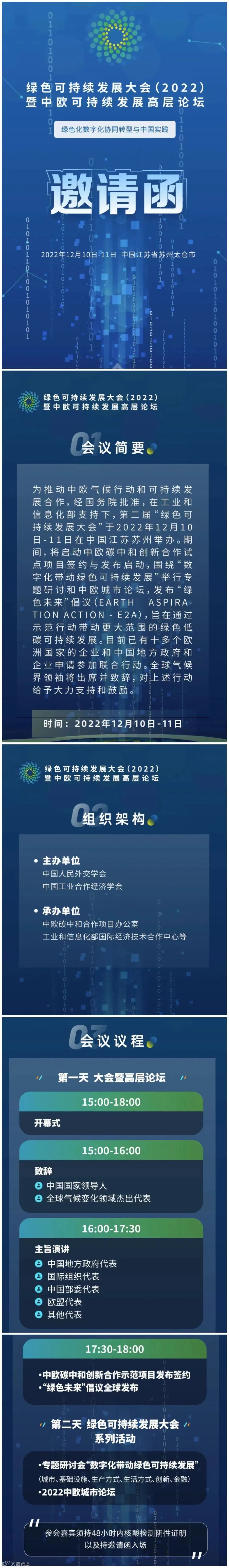 【产业动态】绿色可持续发展大会(2022)暨中欧可持续发展高层论坛邀请函