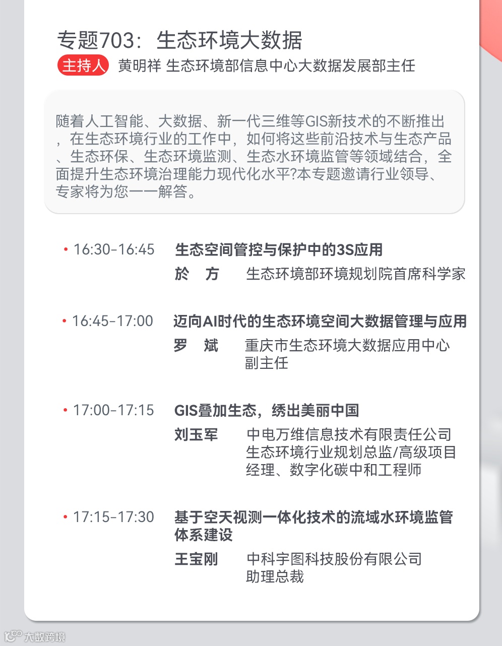 即日起,我们将陆续分享10大板块38场专题论坛的报告PPT,后续更新敬请关注!今天我们为大家分享「水利气象与生态环境」板块,专题703:生态环境大数据报告PPT!