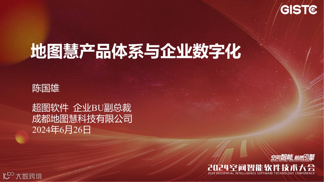 在2024空间智能软件技术大会“数字孪生园区与企业数字化”专题会议上,超图软件企业BU副总裁陈国雄作《地图慧产品体系与企业数字化》报告。