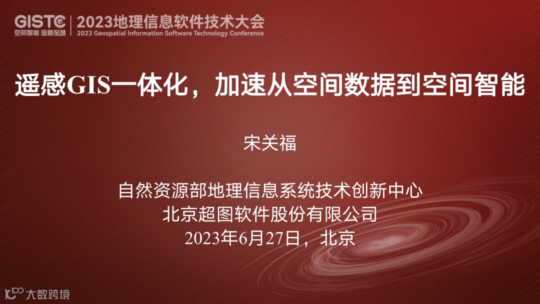 6月27日,2023地理信息软件技术大会在北京国家会议中心召开。自然资源部地理信息系统技术创新中心主任、超图软件集团董事长宋关福作《遥感GIS一体化,加速从空间数据到空间智能》主题报告。现将视频回放和报告PPT分享如下。