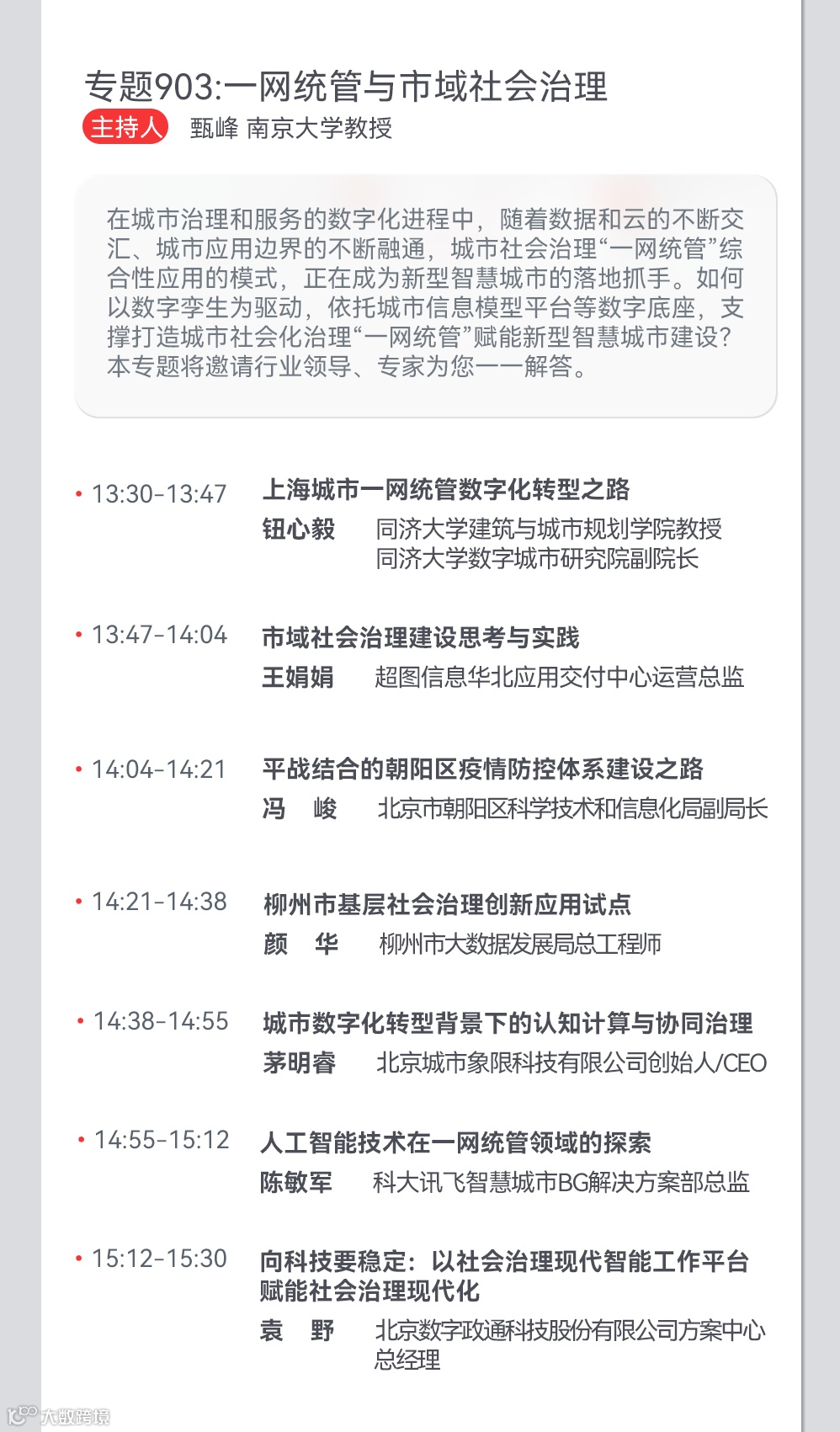 即日起,我们将陆续分享10大板块38场专题论坛的报告PPT,后续更新敬请关注!今天我们为大家分享「新型智慧城市与智慧园区」板块,专题903:一网统管与市域社会治理报告PPT!
