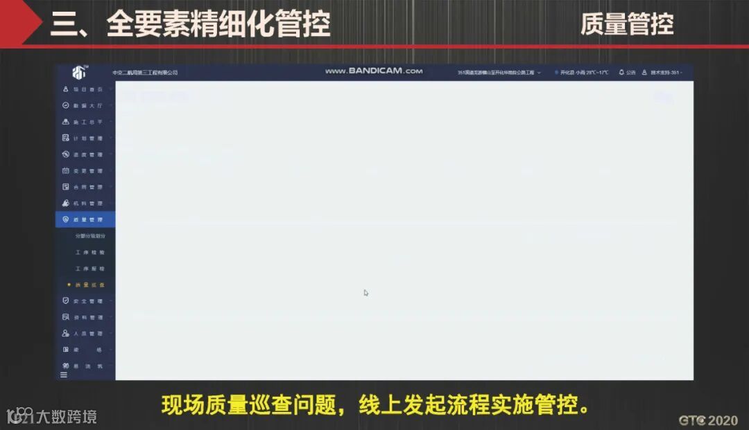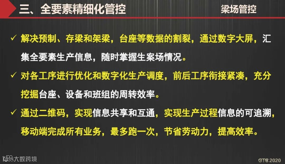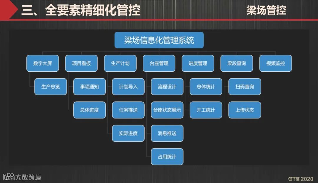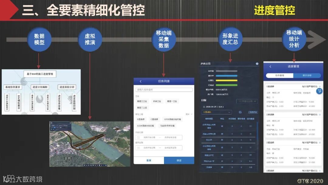 在GTC 2020『“BIM+GIS”与CIM论坛』上,小塔科技发展集团有限公司副总经理赵剑锋作了《数字技术赋能公路工程全要素精细化管控》主题报告,以数字交通规划为切入点,提出利用BIM+GIS等先进信息和数字技术,对公路工程实现全要素、物联感知、精细化管控的解决方案,分享了智慧建造云平台在企业驾驶舱建设,安全、质量管控,以及人员、机械、物料、砼浇筑、智慧梁场等精细化管控的经验。