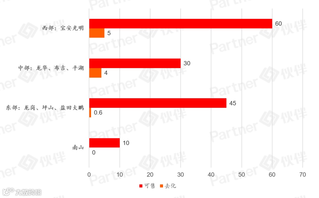 供需量:宝安光明库存最多,成交主要在深圳西部(宝安光明)及中部(龙华、布吉、平湖)