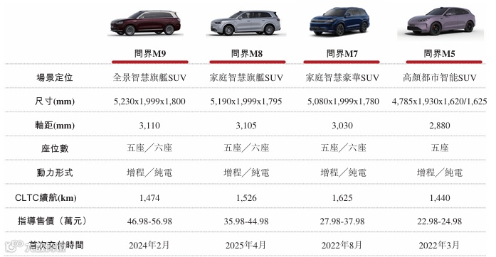 问界品牌有问界M9、问界M8、问界M7和问界M5四款车型,通过差异化定位实现市场覆盖,以精准价格梯度与场景化功能组合,全面抢占高端用户市场。