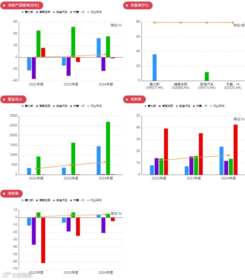 净利分别约为人民币-51.72亿元、-41.49亿元、47.54亿元、13.80亿元、30.78亿元,2025年前6月同比+123.08%;
