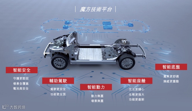 魔方技术平台是具备持续进化能力的智能平台,实现尺寸百变、车型百变,是行业首发可以兼容超增、纯电、超混三种新能源动力总成的平台。魔方技术平台的模块化设计允许组件的高效集成和互换,公司能够凭藉平台化能力高效可靠地实现系列车型的快速量产。
