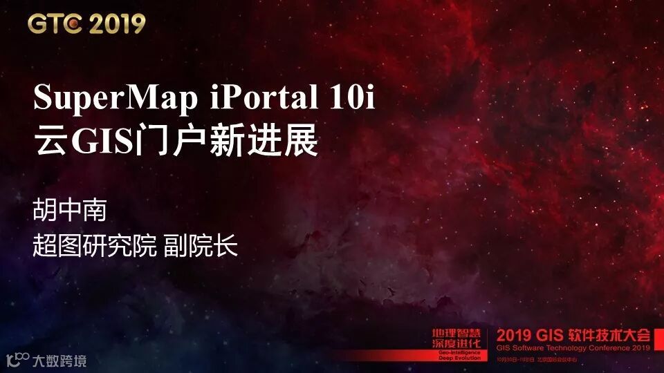 在2019 GIS 软件技术大会SuperMap GIS新技术论坛上,超图研究院副院长胡中南作《SuperMap iPortal 10i云GIS门户平台新进展》报告。现分享资料如下: