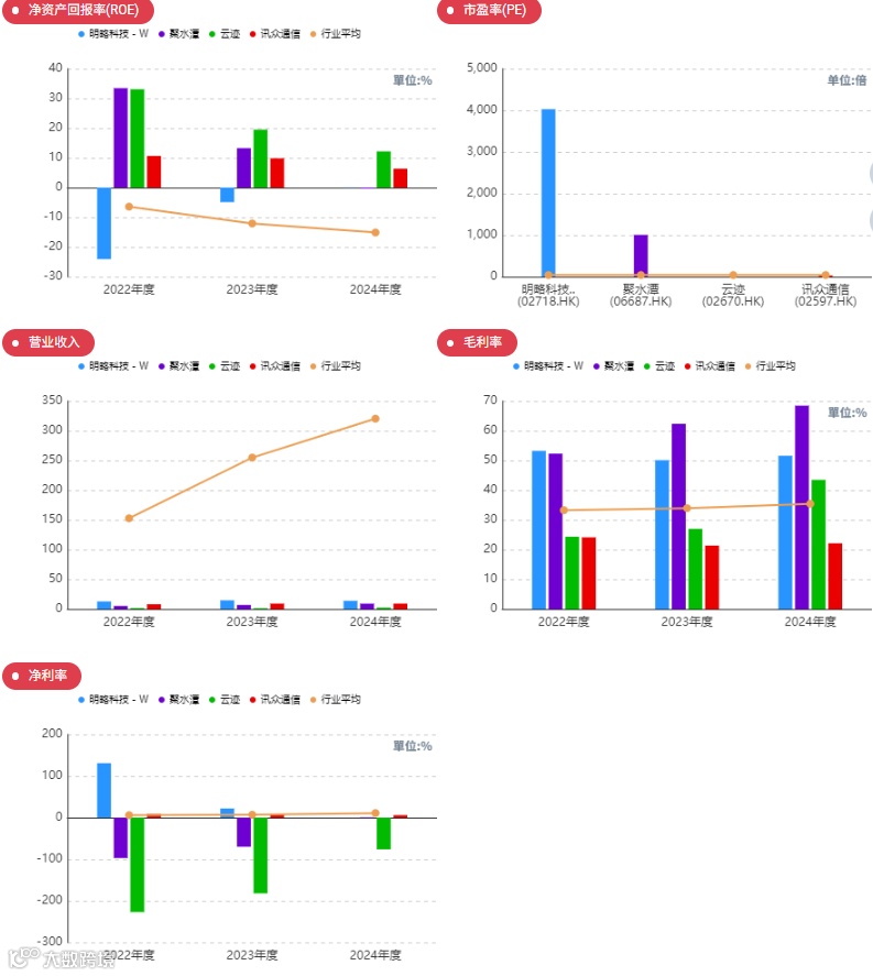 明略科技收入分别约为人民币12.69亿元、14.62亿元、13.81亿元、5.65亿元、6.44亿元,2025年前6月同比+13.93%;