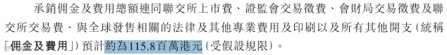 然后这个票招股书上按发售价141.00港元计算,公开的上市所有开支总额约为1.16亿港元,募资额约10.08亿港元,占比约11.49%,开支相比募资额算是一般化了。