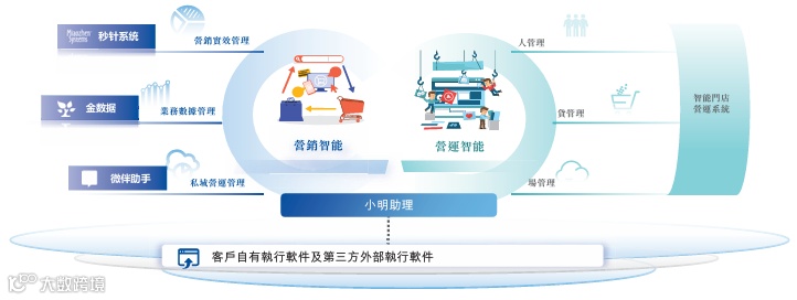 营运智能方面,一种提供各种功能和特点的智能系统,旨在通过对门店营运和管理的三个关键要素:人、货和场的服务流程进行深度数字化和自动化,实现端到端的智能营运。