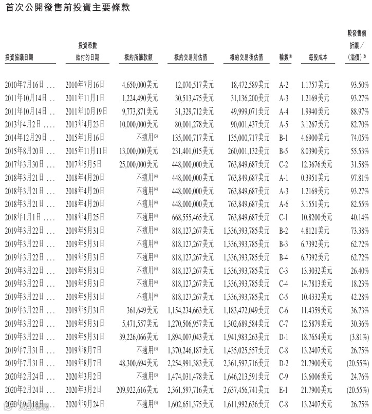 明略科技2024年10月完成3000万美元F-1轮融资,投前估值为5亿美元,每股成本为3.9286美元;同期,完成了5087万美元F-2轮融资,投前估值为7.5亿美元,每股成本为5.4388美元;2024年3月完成2993万美元F-3轮融资,投前估值15亿美元,每股成本为10.8775美元。