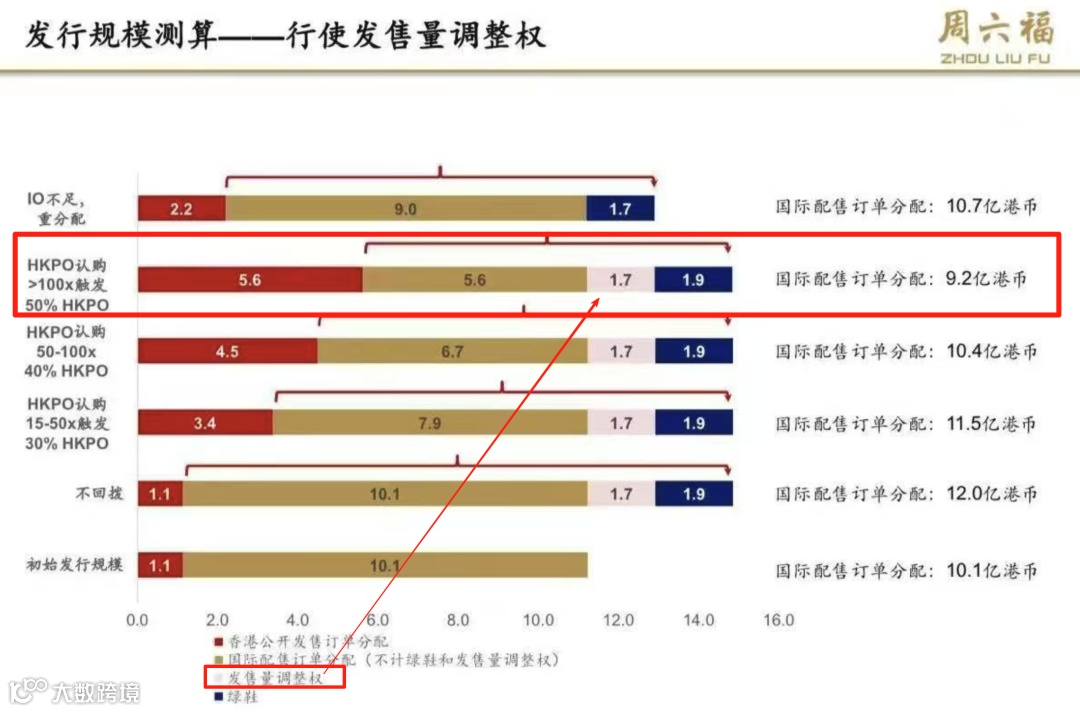 再者,还可以行使15%的发售量调整权,多募资一些钱。类似周六福那样行使发售量调整权,多增发的1.7亿的资金。
