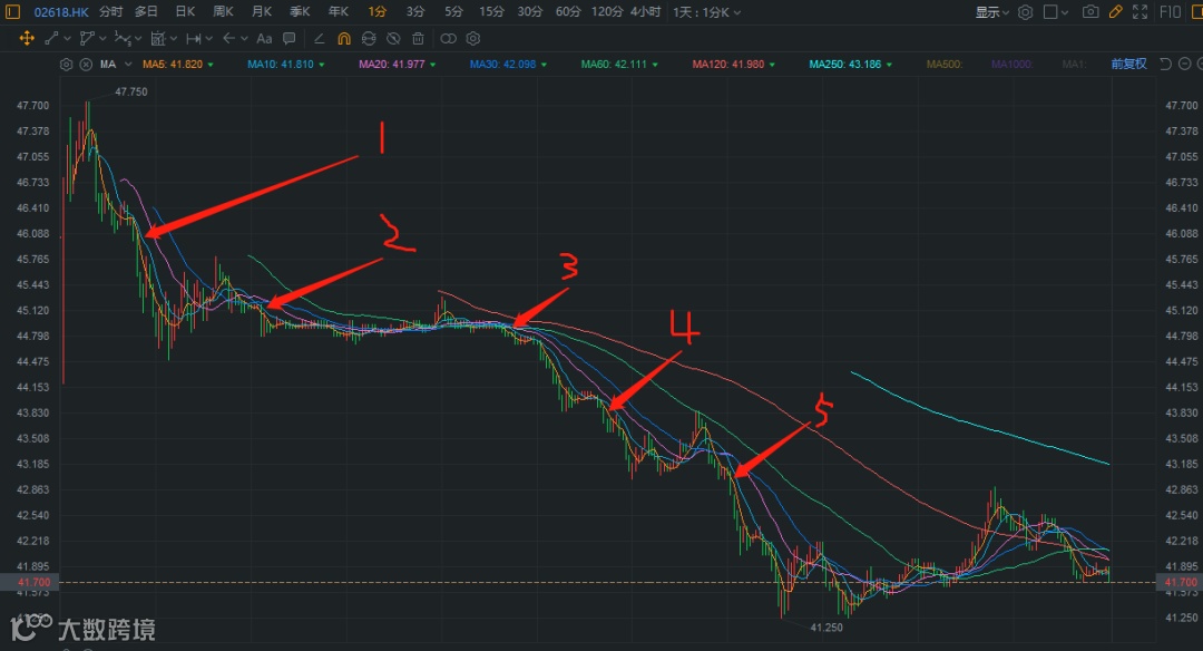 即便暗盘不走,首日还是给机会了,而且是给了一次又一次,至少5次以上的破位,每一次都是卖点。大家数数京东物流一分钟线的下图这走势里面有多少卖点,这么多次的盘口语言都告诉你需要出货了,没有卖的肯定每一次都在想着下一波有反弹个,结果每次都心碎。