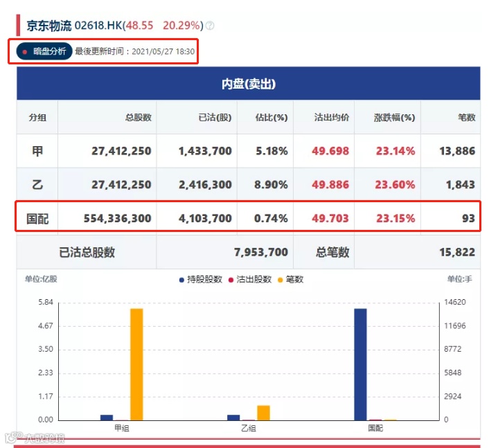 记得昨天分析京东物流的文章提到过一句,京东物流国际配售超购是10倍,让大家引起警惕,大资金不看好,果然如此,砸盘最狠的还是机构那边。