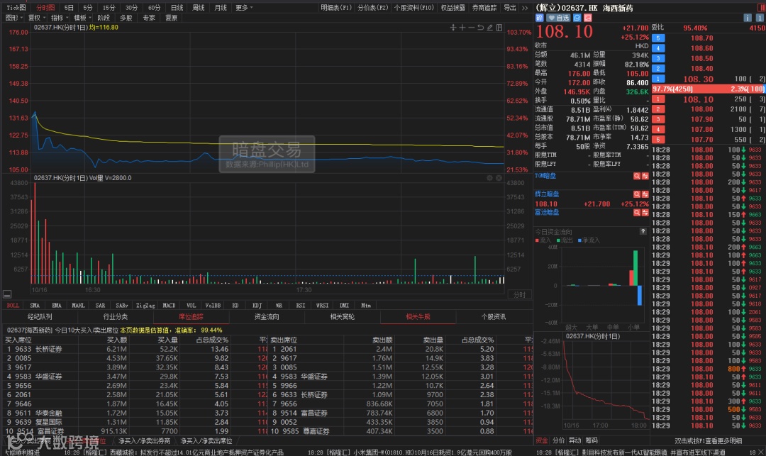 最近新股气氛冷下来了,今天的海西暗盘表现的也一般,从涨50%最终就变成涨25%,涨幅距离开盘直接少一半!