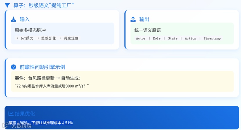 传感器数据算子:接收一条{设备ID: "S001", 时间: "...", 值: "145.2"}的原始数据,将其解析为{行动者: "A水库", 角色: "监测实体", 状态: "水位", 单位: "米", 值: 145.2, ...}的语义结构。