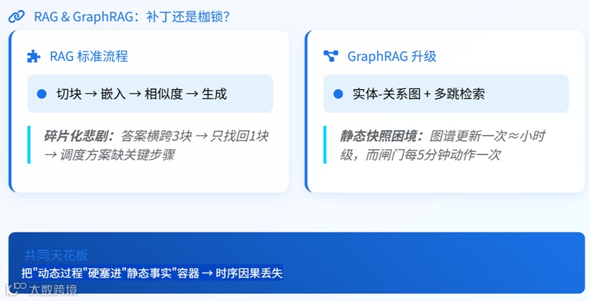然而,RAG的局限性也清晰地标示出了它所能触及的天花板。它无法支撑我们构建能够真正理解和交互这个动态、复杂世界的智能系统的雄心。