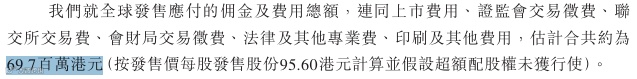 然后这个票招股书上按发售价95.60港元计算,公开的上市所有开支总额约为6970万港元,募资额约6.60亿港元,占比约10.56%,开支相比募资额算是一般化了。