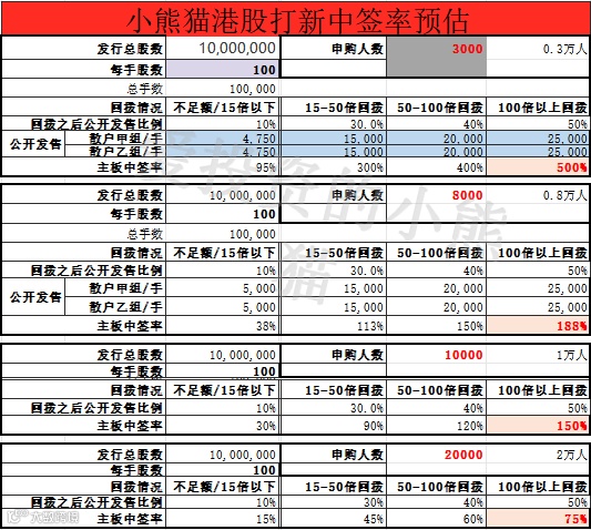 如果孖展在15倍以下,按照3000人来参与预估一下,一手中签率95%。