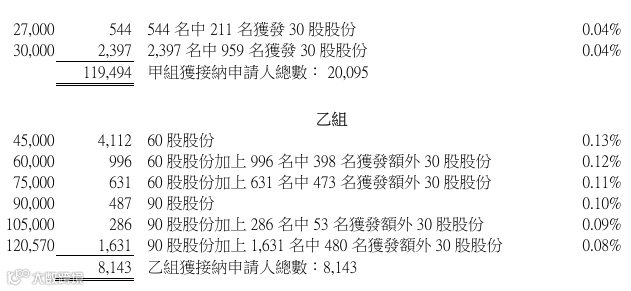 但这次因为沪上阿姨募资规模发的太少了,才2亿港币,所以导致中签率很低。无论甲组和乙组,一直都很卷。沪上阿姨 (02589.HK) 的乙组官方披露的中签名单里有4868人中签60股,有1591人中签90股,有53人中签120股,有1151人顶头槌认购中签90股,有480人顶头槌认购中签120股。乙组总共中签602820股,货值约6819万港元。