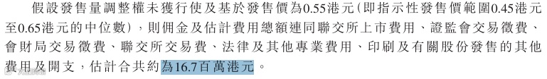 然后这个票招股书上按发售价范围的中位数0.55元计算,公开的上市所有开支总额约为1670万港元,募资额约5500万港元,占比约30.36%,开支相比募资额算是比较多了。