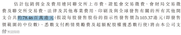 然后这个票招股书上按发售价范围的中位数103.37港元计算,公开的上市所有开支总额约为7846万港元,募资额约2.49亿港元,占比约31.48%,开支相比募资额算是比较多了。