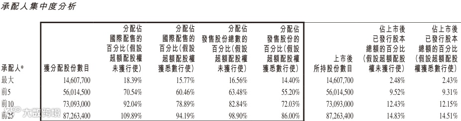 南山铝业国际(02610.HK)国配货是很集中,前25大承配人上市后所持股份数目占上市后已发行股份总数14.51%。南山铝业国际(02610.HK)这个票稳价人是华泰,有绿鞋3.52亿港元。