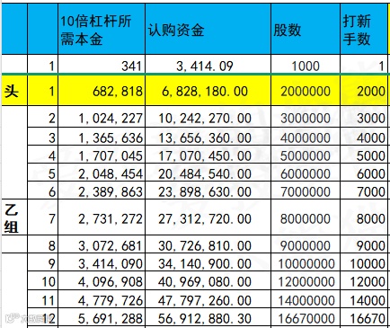 乙头需要认购资金683万,乙组的各档融资所需要的本金还有融资金额对应如下表: