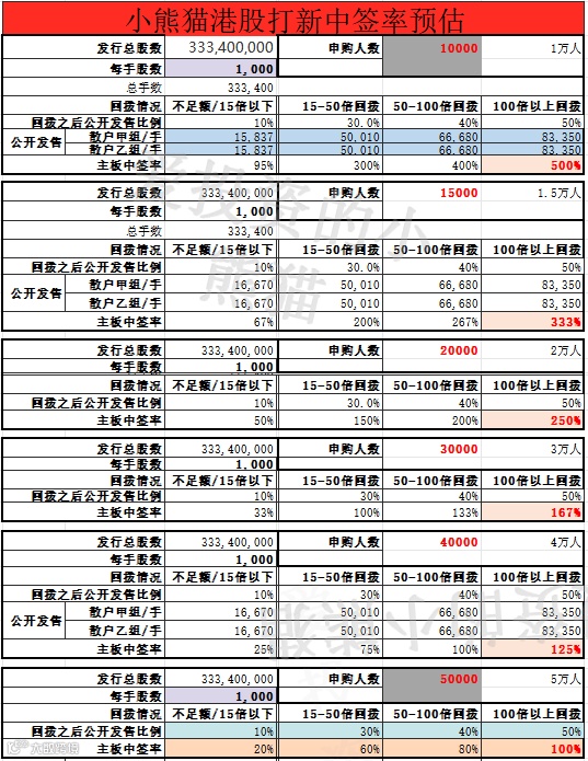 关于一手中签率方面,如果孖展在15倍以下,按照3万人来参与预估一下,一手中签率33%,目前看没有回拨,不知道后面几天会不会热起来。