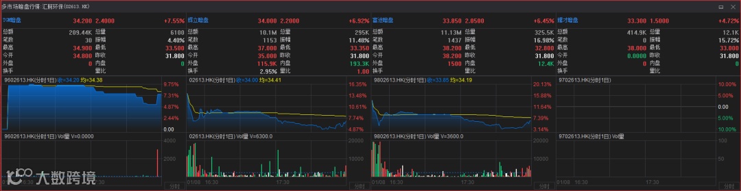 汇舸环保(02613.HK)辉立暗盘以35.000港元高开,快速上冲到最高点37.00港元后震荡回落,在最低点33.35港元止跌,尾盘稍有上涨,以34.00港元报收,涨幅6.92%,振幅11.48%。