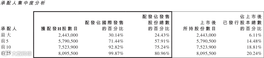 海螺材料科技(02560.HK)国配货是很集中,前25大承配人上市后所持股份数目占上市后已发行股份总数17.48%。海螺材料科技(02560.HK)这个票稳价人是中信建投,没有绿鞋。