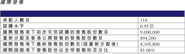 汇舸环保(02613.HK)国际配售总共118人,认购额0.95倍。