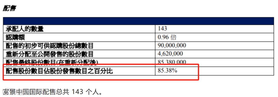 这种是一个比较常规的机制,基本上所有香港ipo新股都是按照这一套规则在玩。当然这一切的前提都是基于国配和公配都足额的情况下,那有时候如果订单码不齐,那就会出现一些另类的情况: