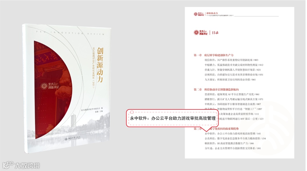 永中办公云平台创新应用在某部委高效审批管理工作中起到了良好效益,获得了案例库编委会关注并成功收录至案例库,该案例是《创新源动力—北大创新评论产业研究案例库(2021)》中唯一入选的办公软件厂商应用案例,这也是对永中软件技术实力与创新能力的认可与肯定,提升了公司行业影响力。