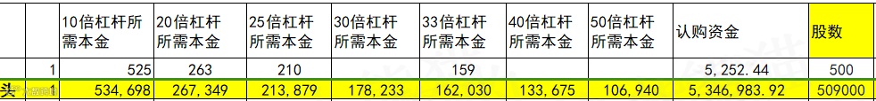 乙组头,这次是535万本金,乙组的各档融资所需要的本金还有融资金额对应如下表: