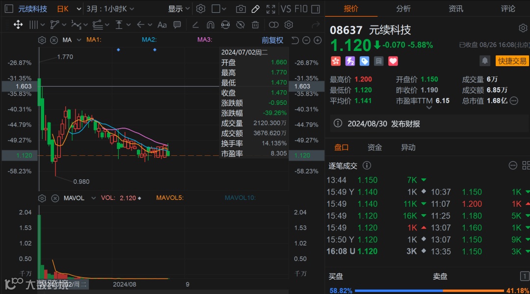 创业板小票也没什么基本面可言的,之前上市的元续科技从首日大跌30%到现在累积跌幅已经超过了50%了!