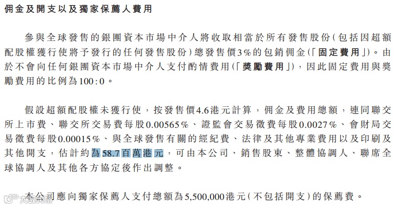 然后这个票招股书上按发售价4.60港元计算,公开的上市所有开支总额约为5870万港元,募资额约5.29亿港元,占比约11.10%,开支相比募资额算是相当少了。