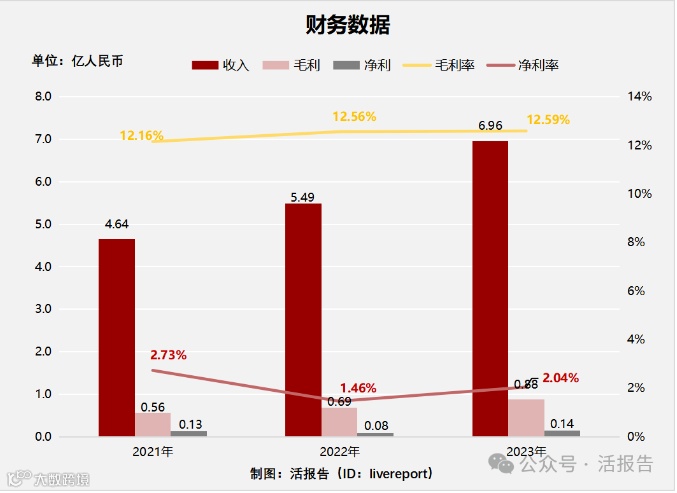 净利润分别约为人民币0.13亿元、0.08亿元、0.14亿元,年复合增长率为5.89%;