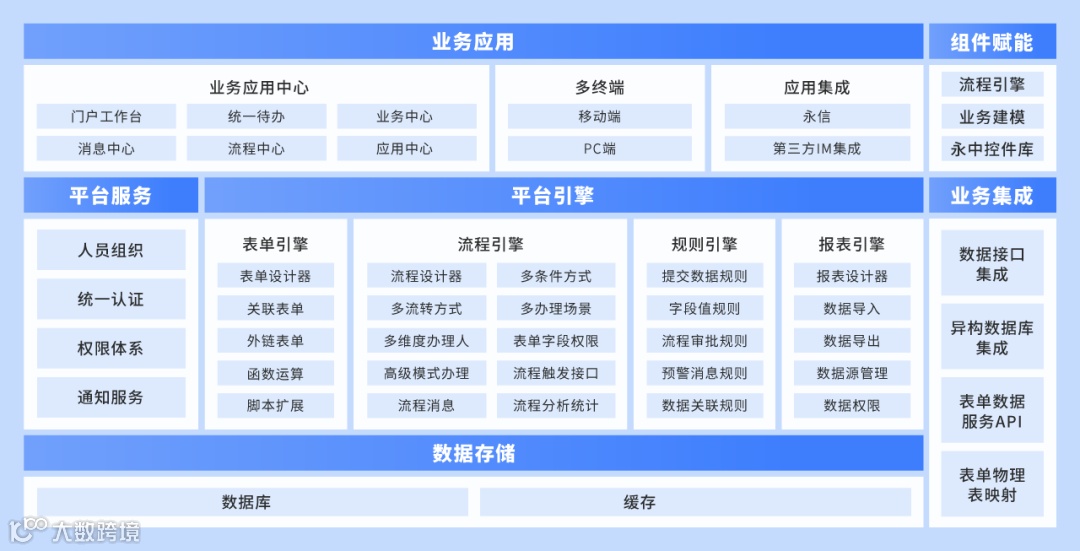 永中低代码平台,基于永中软件自研的流、版、签等技术,以模块化、可视化的方式为用户快速搭建各类业务应用提供智慧支撑,解锁业务迭代优化新路径,加速政企数字化转型。