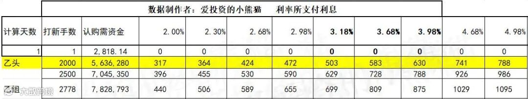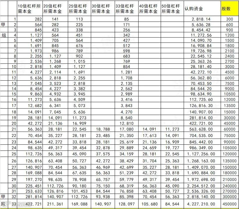 乙组头,这次是564万本金,乙组的各档融资所需要的本金还有融资金额对应如下表: