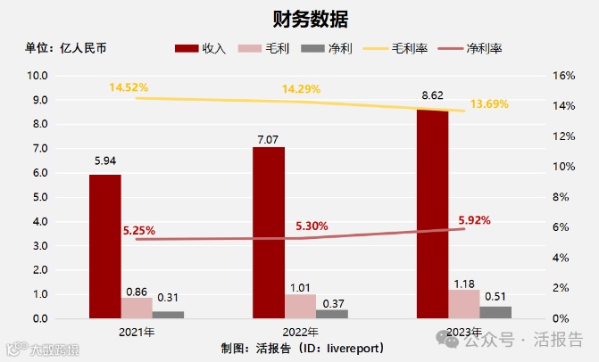 毛利率分别约为14.52%、14.29%、13.69%;