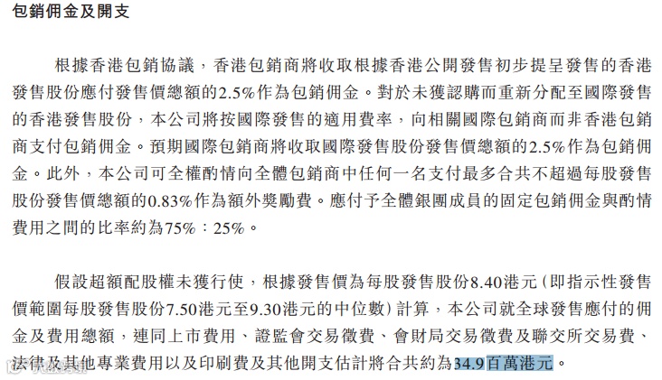 然后这个票招股书上按发售价范围的中位数8.40港元计算,公开的上市所有开支总额约为3490万港元,募资额约1.40亿港元,占比约24.93%,开支相比募资额算是比较多了。