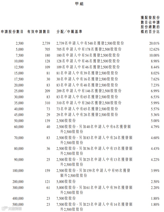 如祺出行 (09680.HK) 的乙组官方披露的中签名单里有2人中签200000股。