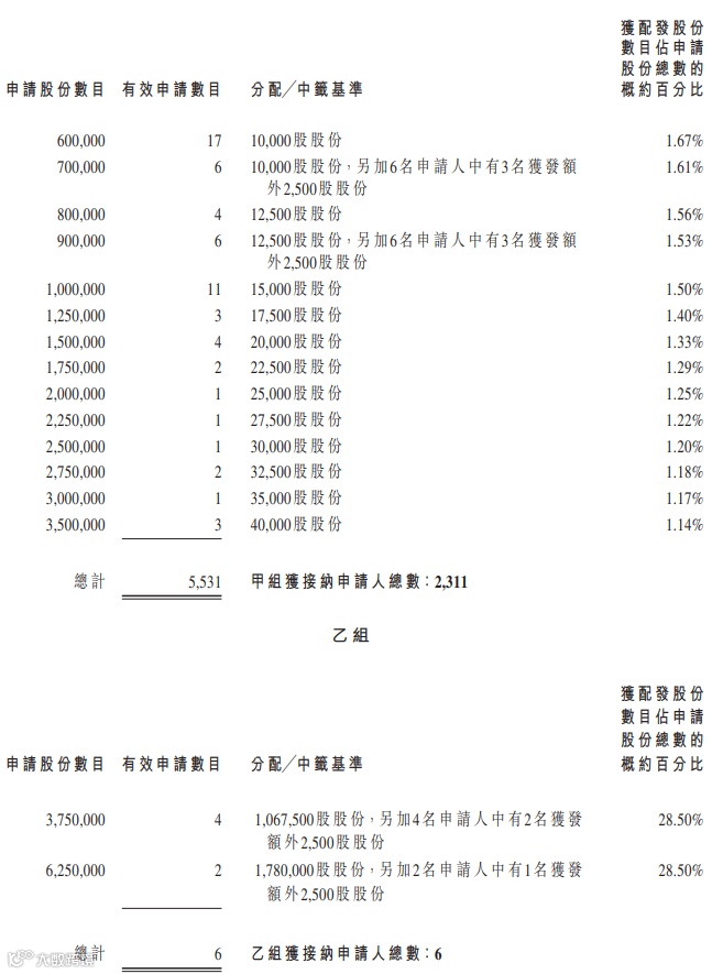 瑞昌国际控股(01334.HK)的乙组官方披露的中签名单里有2人中签1067500股,有2人中签1070000股,有1人顶头槌申购中签1780000股,另1人顶头槌申购中签1782500股。