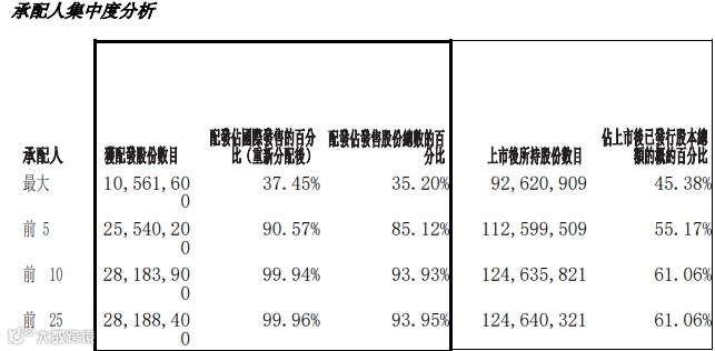 如祺出行 (09680.HK) 国配货是很集中,前25大承配人上市后所持股份数目占上市后已发行股份总数61.06%,如祺出行 (09680.HK) 这个票没有稳价人,也没有绿鞋。