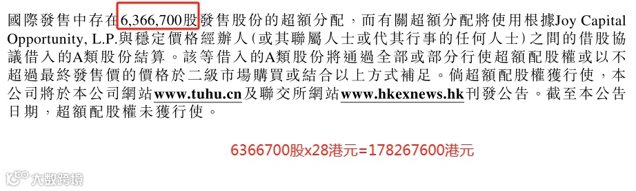 这个票的稳价人是高盛,这个票居然有绿鞋1.78亿港元,公配总共1.19亿港元,绿鞋基本上打满了。就看高盛怎么去护盘了。
