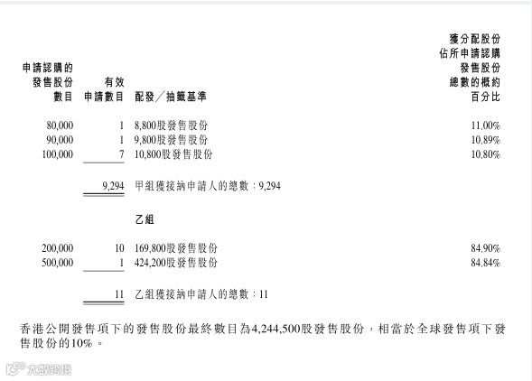 途虎-W(09690.HK)的乙组官方披露的中签名单里有5人中169800股, 还有5人中签169800股和1人中签424200股没找到。