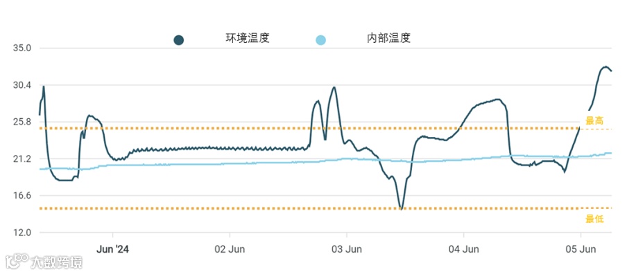 图 02 运输途中的集装箱内外温度