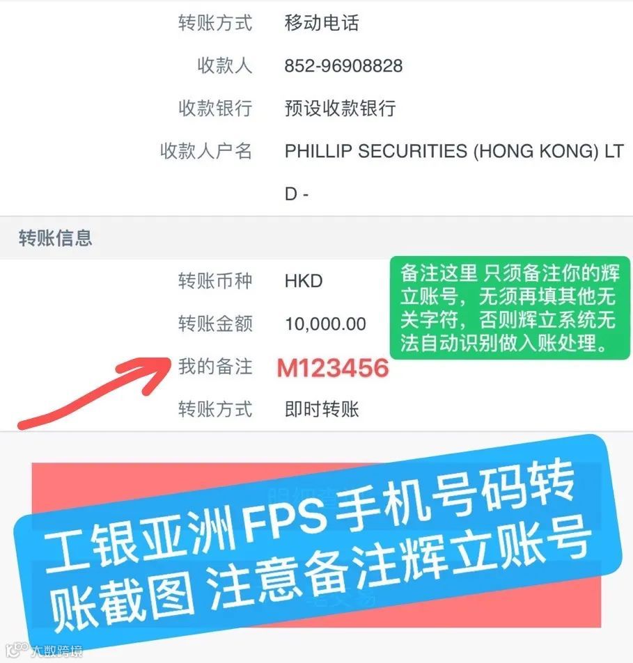 第一选择:(所有转账首选这个方法,无须上传截图,但需要在银行转账界面备注自己的辉立账号,方能及时到账),新开户第一次入金备注手机号码,是否加86都没关系。