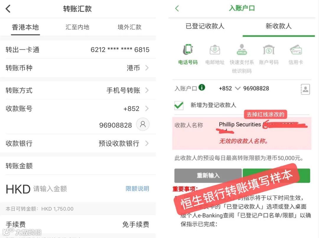 注意:(民生银行使用这个方式转账记得选择 FPS-账户号码,这样就不需要支付50元手续费,但带有双方账号的转账截图还是需要上传的)